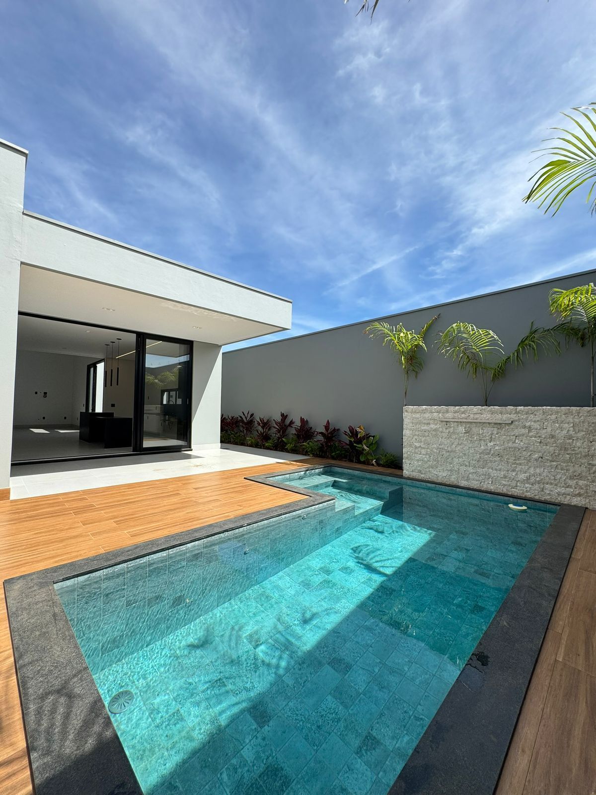 • Piscina aquecida com hidromassagem e cascata.