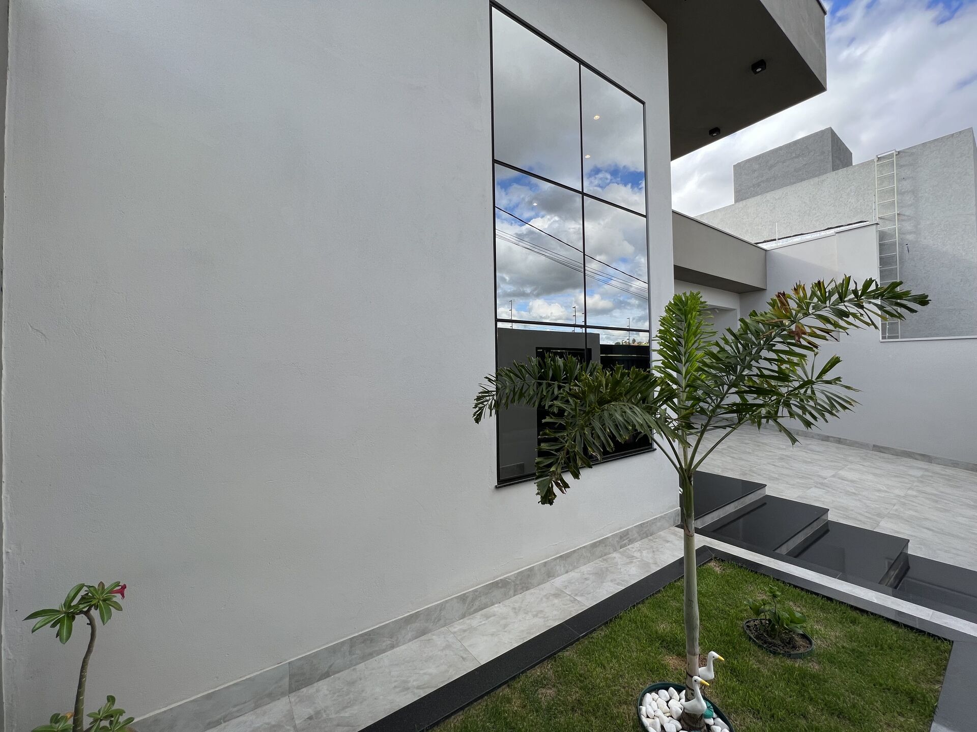 Área externa com grama.