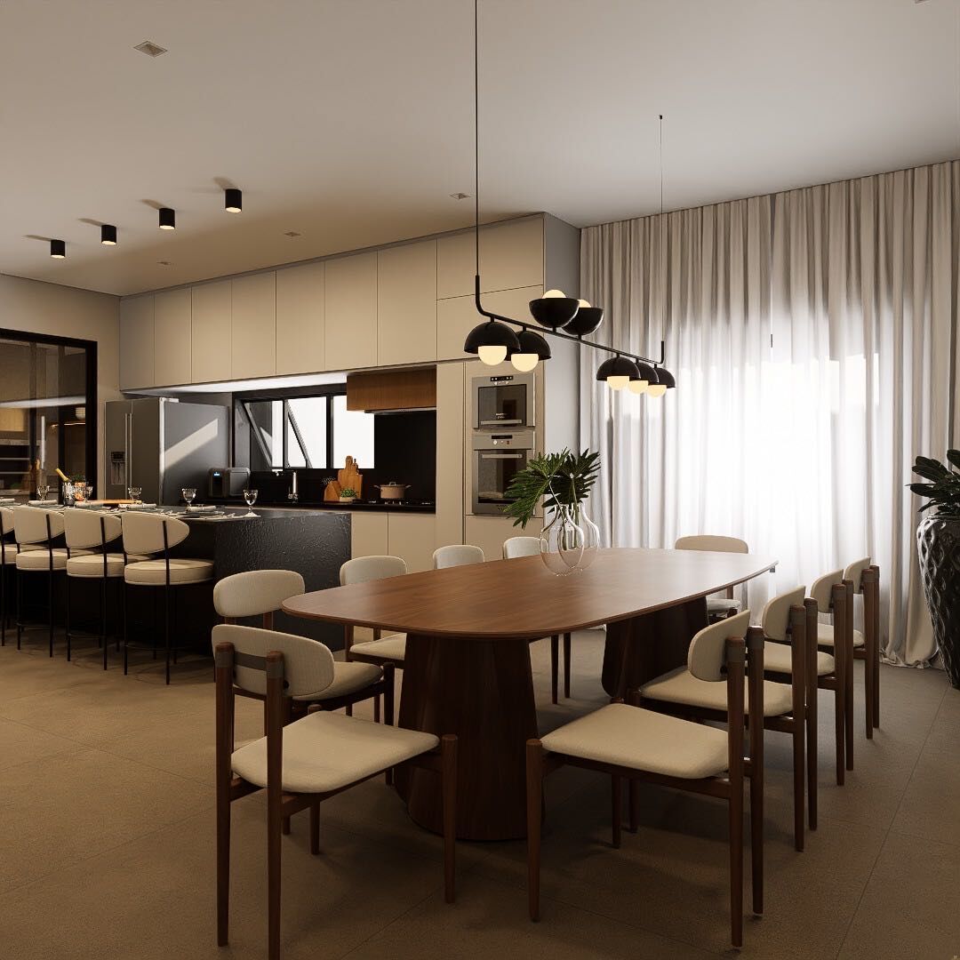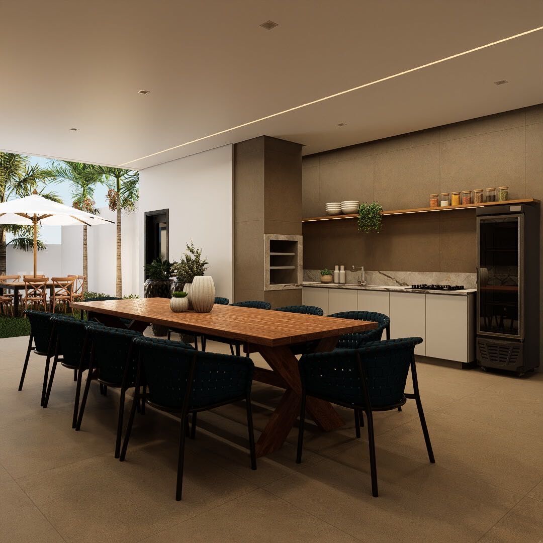 A casa conta com sala com pé-direito alto, proporcionando imponência e ótima iluminação natural, sala de jantar ampla integrada à cozinha, criando um ambiente moderno e funcional, além de uma área gourmet espaçosa, ideal para receber família e amigos.